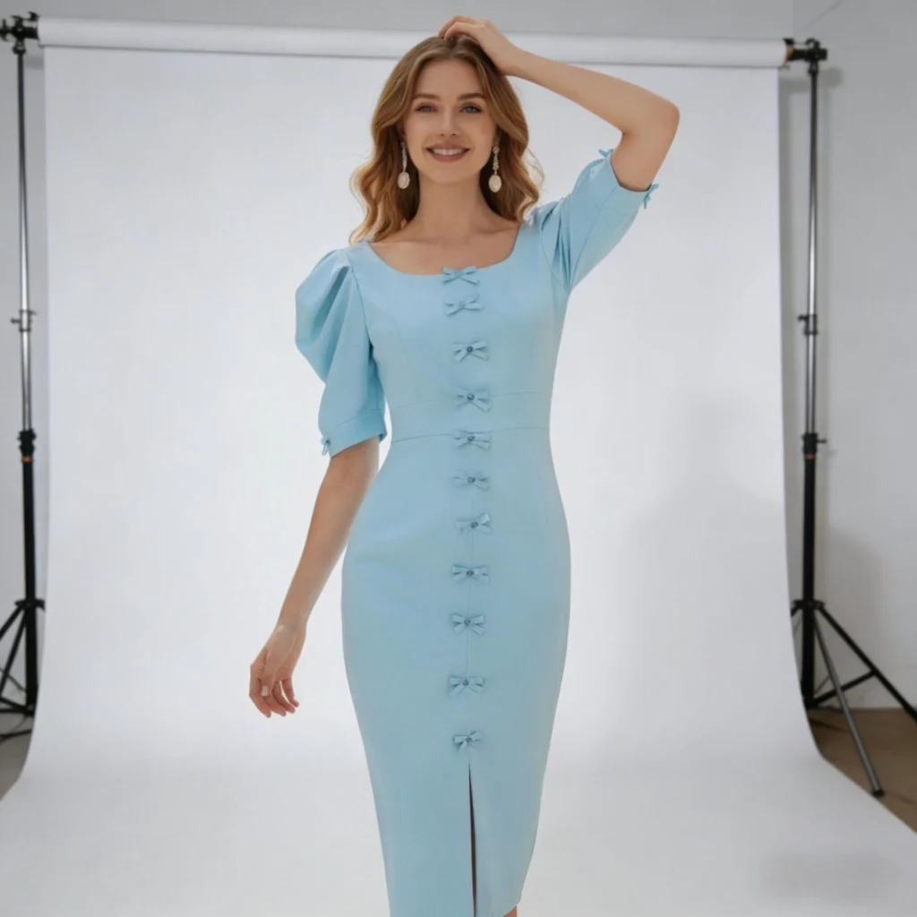 For formal occasions, less is more—clean, sharp silhouettes reign supreme. The H-line straight cut is a timeless choice that flatters every figure. Its fluid lines avoid tightness, concealing waist and abdominal curves while elongating proportions to create an effortlessly poised and upright bearing. The waist-cinched A-line silhouette accentuates feminine curves. Its high waistline precisely defines the waist and hips, while the skirt flares naturally, maintaining formality with a touch of softness. Long floor-length gowns feature a slightly cinched waist paired with a straight skirt, creating a graceful flow with every step—exuding confidence without ostentation. Precision tailoring, well-balanced shoulder lines, and perfectly proportioned hemlines ensure the gown fits flawlessly to the figure. Every movement radiates grace and poise, making it the focal point of any occasion without needing excessive accessories.