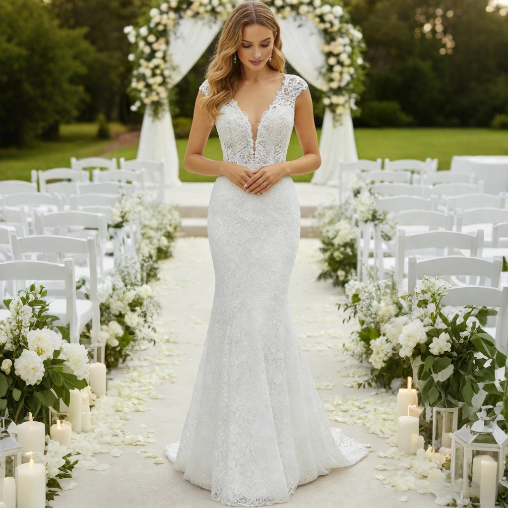 Full Lace Deep V-Neck Backless Mermaid Train Wedding Dress