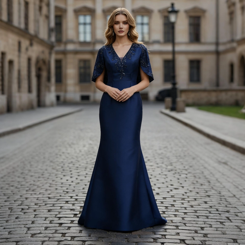 | Description | A deep blue V-neck gown with cape detailing and an open back, adorned with sparkling jewels for an air of sophistication. The perfect fashion statement to command attention at any important occasion. | A blue one-shoulder gown with three-dimensional floral embellishments and flowing tulle sleeves. Its tailored silhouette accentuates elegance, making it a captivating choice for showcasing distinctive taste at evening events. | This purple-gray V-neck gown features three-quarter sleeves adorned with three-dimensional floral embellishments and a mermaid-style skirt. Crafted from elegantly draping fabric, it exudes sophistication and grace for formal occasions. | A nude pink gown with a tulle shawl and tailored silhouette—its unique design radiates romance, making it the perfect eye-catching piece to transform you into an ethereal fairy at the gala. | A nude pink off-the-shoulder gown, adorned with full-length beaded embroidery for a luxurious and grand look, features three-quarter sleeves that add elegance. It is the perfect eye-catching piece to showcase sophistication at important occasions. | Navy blue one-shoulder gown with lace sleeves adorned with three-dimensional floral appliqués. The full skirt silhouette exudes elegance and grandeur, while exquisite details showcase your luxurious taste at the gala. |