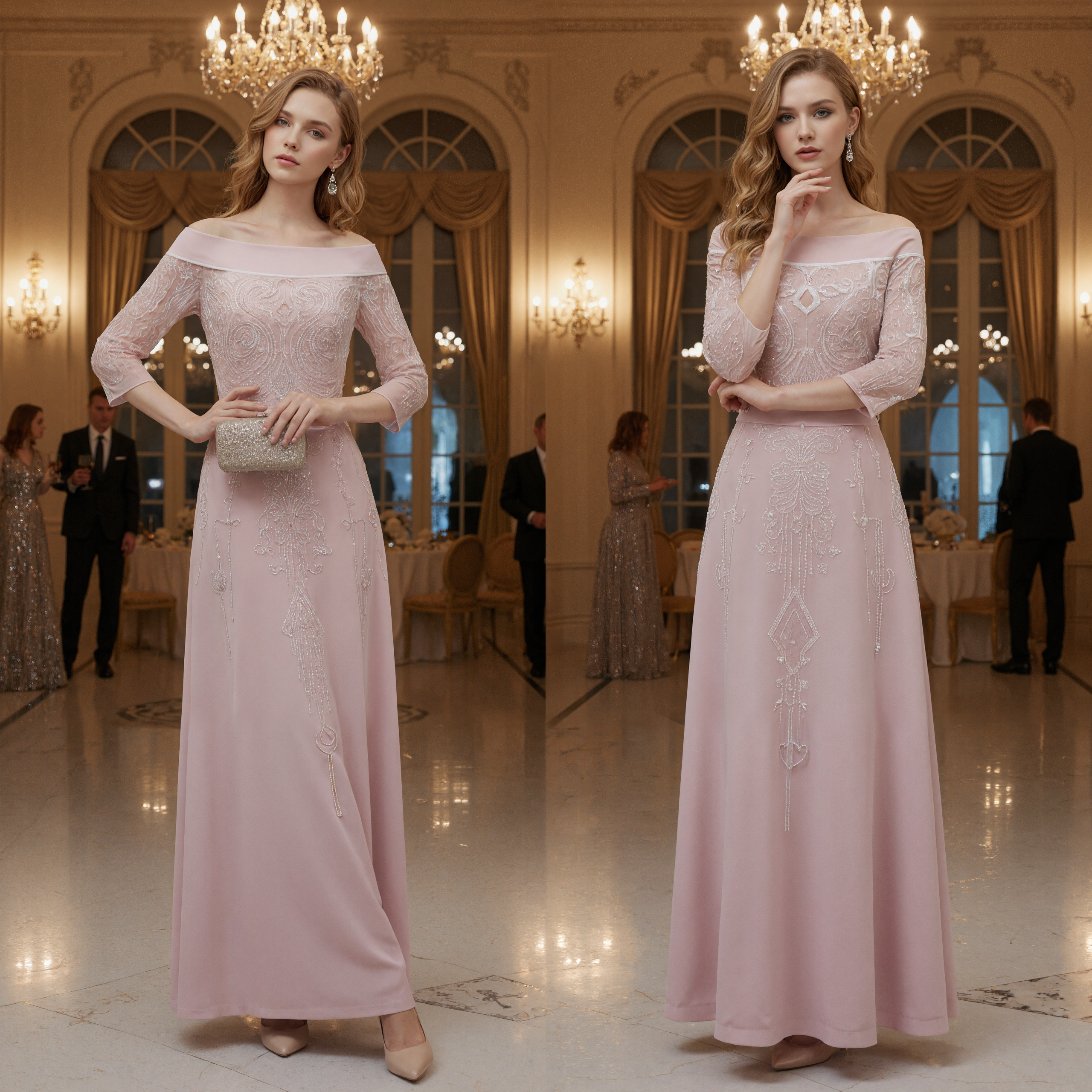 DescriptionA nude pink off-the-shoulder gown, adorned with full-length beaded embroidery for a luxurious and grand look, features three-quarter sleeves that add elegance. It is the perfect eye-catching piece to showcase sophistication at important occasions.A blue one-shoulder gown with three-dimensional floral embellishments and flowing tulle sleeves. Its tailored silhouette accentuates elegance, making it a captivating choice for showcasing distinctive taste at evening events.A purple-gray V-neck gown with bell sleeves and layered pleats, crafted from flowing fabric that exudes romance—the perfect choice for showcasing grace at evening events.A nude-colored one-shoulder gown, featuring three-dimensional floral embellishments and a slit skirt, exudes elegance with its gracefully draping fabric. This sophisticated choice is perfect for weddings and celebrations, showcasing refined taste.Black and nude color-blocked gown, featuring three-dimensional floral embellishments and a mermaid-style skirt. The three-quarter sleeves lend an air of elegant sophistication, making it the perfect fashion statement for formal occasions where luxury is the focus.This purple-gray V-neck gown features three-quarter sleeves adorned with three-dimensional floral embellishments and a mermaid-style skirt. Crafted from elegantly draping fabric, it exudes sophistication and grace for formal occasions.