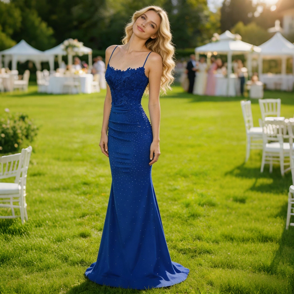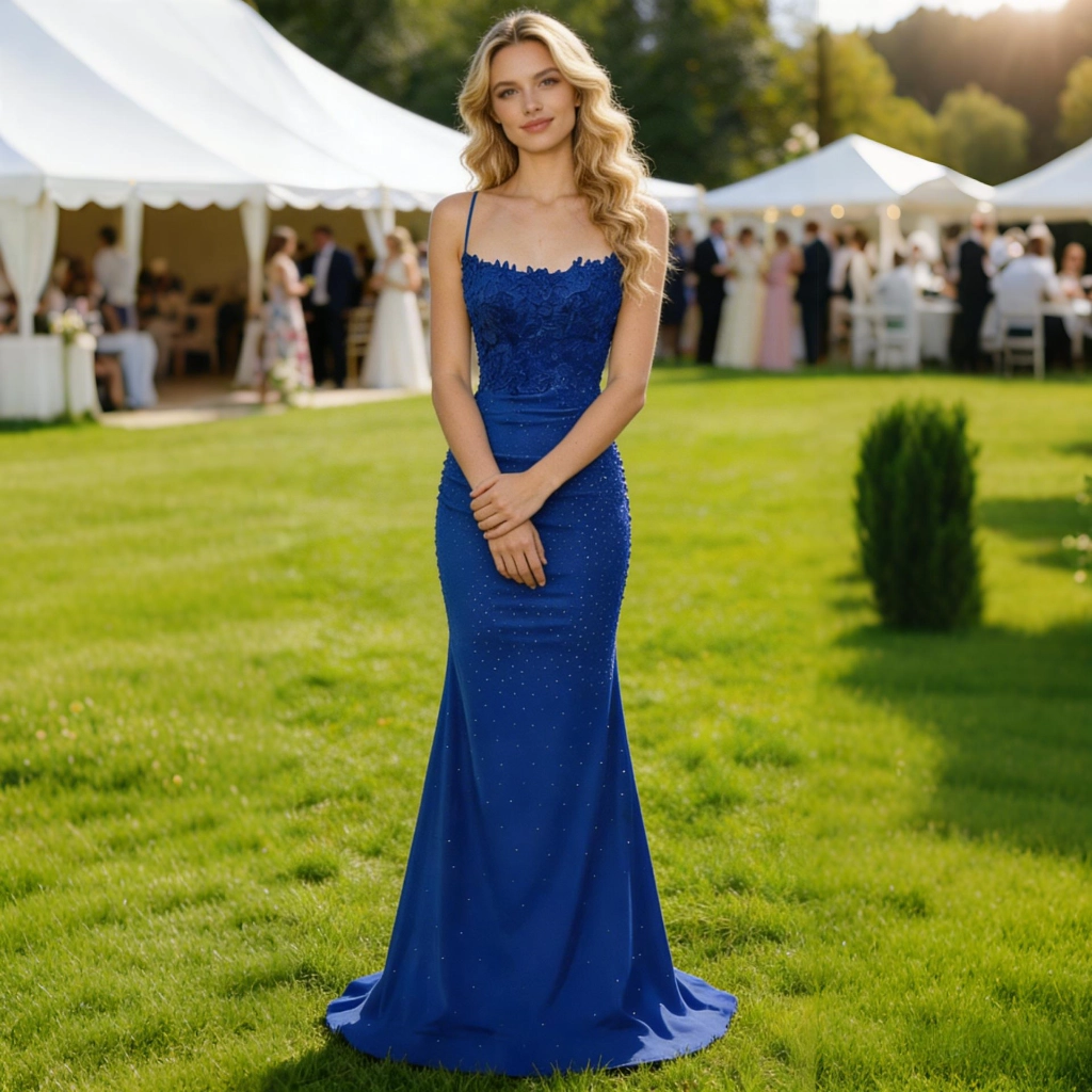 | Description | This royal blue, figure-hugging evening gown features a lace bustier adorned with delicate sequins all over. The crisscross back design is seductively alluring, while the fitted mermaid silhouette accentuates the body’s curves. The vibrant, high-saturation color is eye-catching, making it a standout choice for galas and balls. | A nude pink off-the-shoulder gown, adorned with full-length beaded embroidery for a luxurious and grand look, features three-quarter sleeves that add elegance. It is the perfect eye-catching piece to showcase sophistication at important occasions. | A blue-and-white color-blocked sleeveless gown, featuring intricate three-dimensional lace floral embellishments that catch the eye. Its figure-flattering silhouette accentuates elegance, making it a stylish choice to showcase your taste at banquets and celebrations. | A rose-pink long-sleeved gown, featuring pleated detailing and diamond embellishments, with an elegant and sophisticated fishtail hemline—the perfect choice for weddings and celebrations to showcase opulence. | A light blue one-shoulder gown with long sleeves and a jeweled bow exudes understated elegance, making it an ideal choice for formal occasions to showcase a gentle and refined demeanor. | This light blue lace one-shoulder gown features exquisite, elegant long sleeves and an asymmetrical hemline that exudes unique charm. It is a captivating choice for evening events and parties, showcasing feminine grace and individuality.