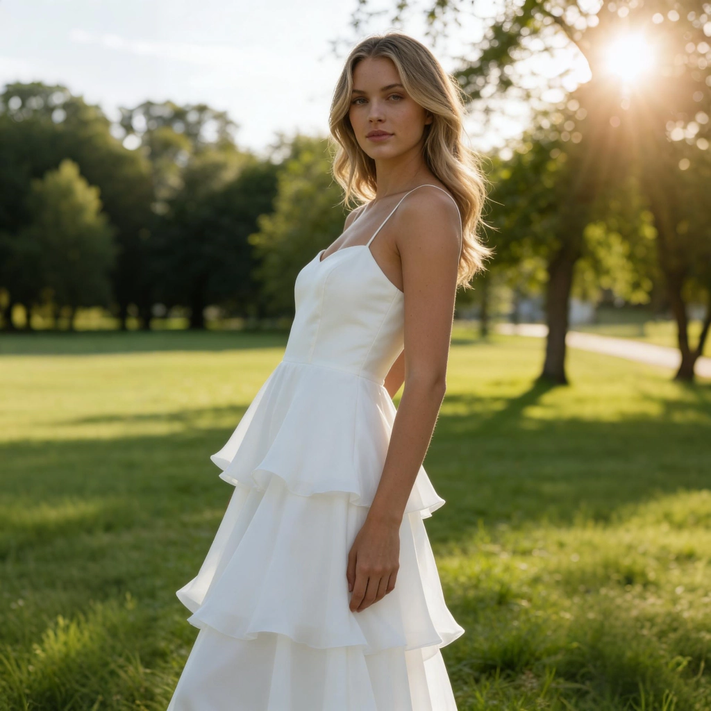 | Description | White strapless tiered skirt dress, featuring a fitted strapless bodice and a light, flowing skirt. Sweet and romantic, it's the vibrant, eye-catching energy representative at outdoor banquets. | A royal blue feather-adorned gown, featuring layered cuts paired with jeweled embellishments and feather sleeves, boasts a distinctive design that radiates individuality. It's the perfect eye-catching piece to stand out at any party. | A nude pink lace gown with three-quarter sleeves, adorned with three-dimensional floral appliqués and a large bow. Its layered skirt exudes romantic elegance, making it the perfect choice for weddings and formal dinners to showcase feminine grace. | Black and nude color-blocked gown, featuring three-dimensional floral embellishments and a mermaid-style skirt. The three-quarter sleeves lend an air of elegant sophistication, making it the perfect fashion statement for formal occasions where luxury is the focus. | A purple-gray V-neck gown with bell sleeves and layered pleats, crafted from flowing fabric that exudes romance—the perfect choice for showcasing grace at evening events. | Navy blue one-shoulder gown with lace sleeves adorned with three-dimensional floral appliqués. The full skirt silhouette exudes elegance and grandeur, while exquisite details showcase your luxurious taste at the gala. |