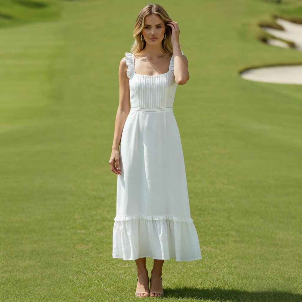 | Description | A white pleated strapless maxi dress with a cinched waist and full skirt, featuring a simple silhouette. Fresh and graceful, it's a comfortable yet eye-catching choice for outdoor tea breaks. | A purple-gray V-neck gown with bell sleeves and layered pleats, crafted from flowing fabric that exudes romance—the perfect choice for showcasing grace at evening events. | A nude pink lace gown with three-quarter sleeves, adorned with three-dimensional floral appliqués and a large bow. Its layered skirt exudes romantic elegance, making it the perfect choice for weddings and formal dinners to showcase feminine grace. | This purple-gray V-neck gown features three-quarter sleeves adorned with three-dimensional floral embellishments and a mermaid-style skirt. Crafted from elegantly draping fabric, it exudes sophistication and grace for formal occasions. | Navy blue fishtail gown with a square neckline and sculpted pleats. The fitted skirt accentuates curves, making it a stylish choice to showcase elegance at formal events. | A blue-and-white color-blocked off-the-shoulder gown features three-quarter sleeves and a waist belt. Its distinctive cape-style design exudes elegance, ensuring you stand out at formal events. |
